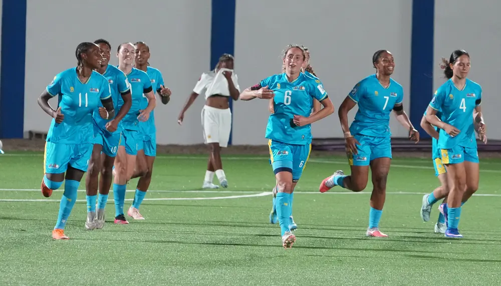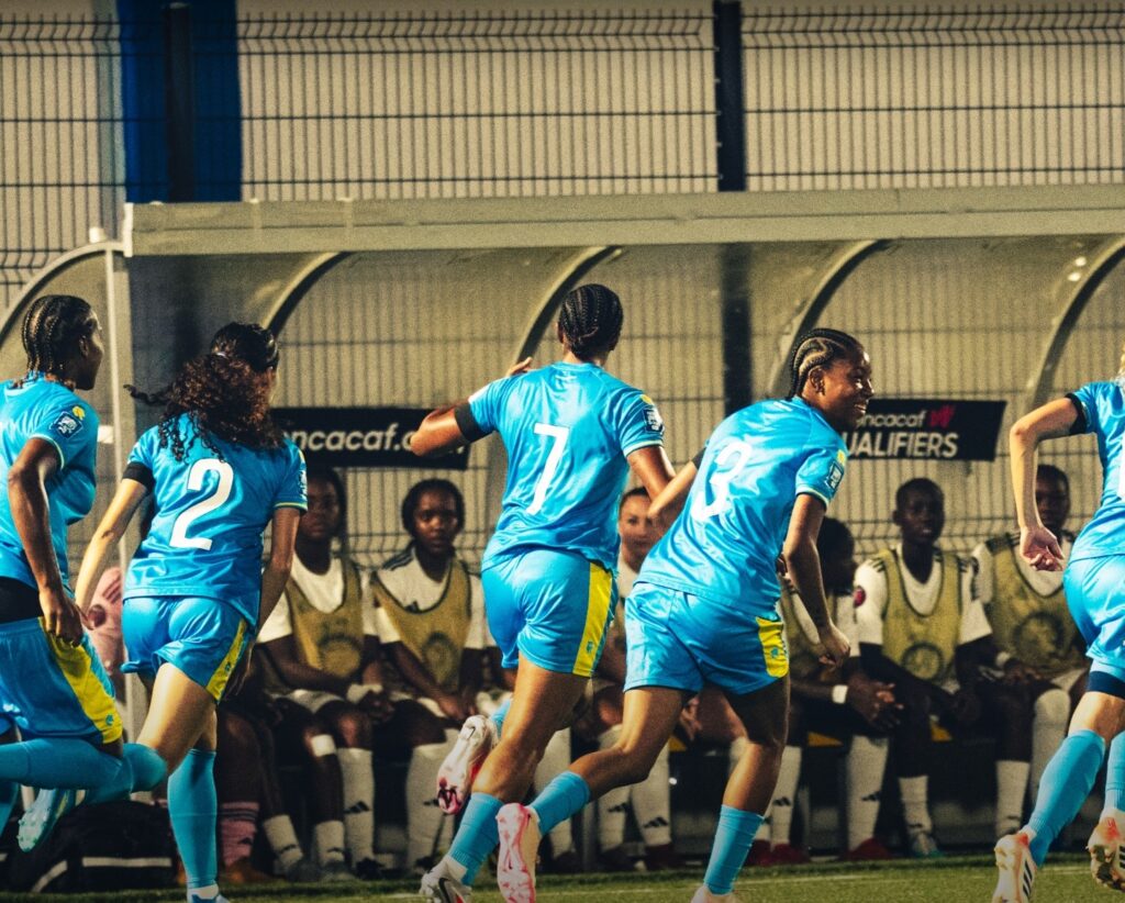 Seleccion femenino di Aruba celebrando nan gran victoria riba Korsou na stadion Rignaal ‘Jean’ Francisca na Willemstad – Foto cortesia Concacaf