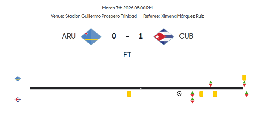 🟨’44 Acosta CUB 🟨’72 Aguilar CUB 🟨’78 Hechavarria CUB 🟨’90+1 Breinburg ARU