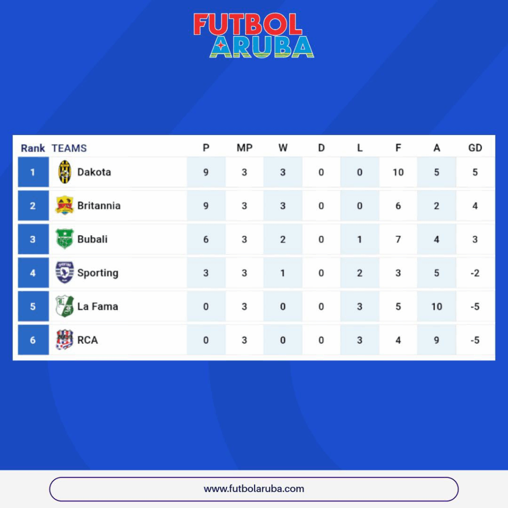 Britannia y Dakota ta keda invicto den Liga Oro. Bubali ta perde contra Dakota den gran partido, Britannia ta derota La Fama contundentemente y Sporting ta dal e sorpresa di siman ganado RCA.